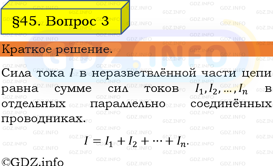 ГДЗ (готовое домашние задание из решебника) по Физике 8 класса авторов И. М. Перышкин, А. И. Иванов, Просвещение, 2023-2025г. ФГОС на Вопрос №3, § 45. Параллельное соединение проводников.