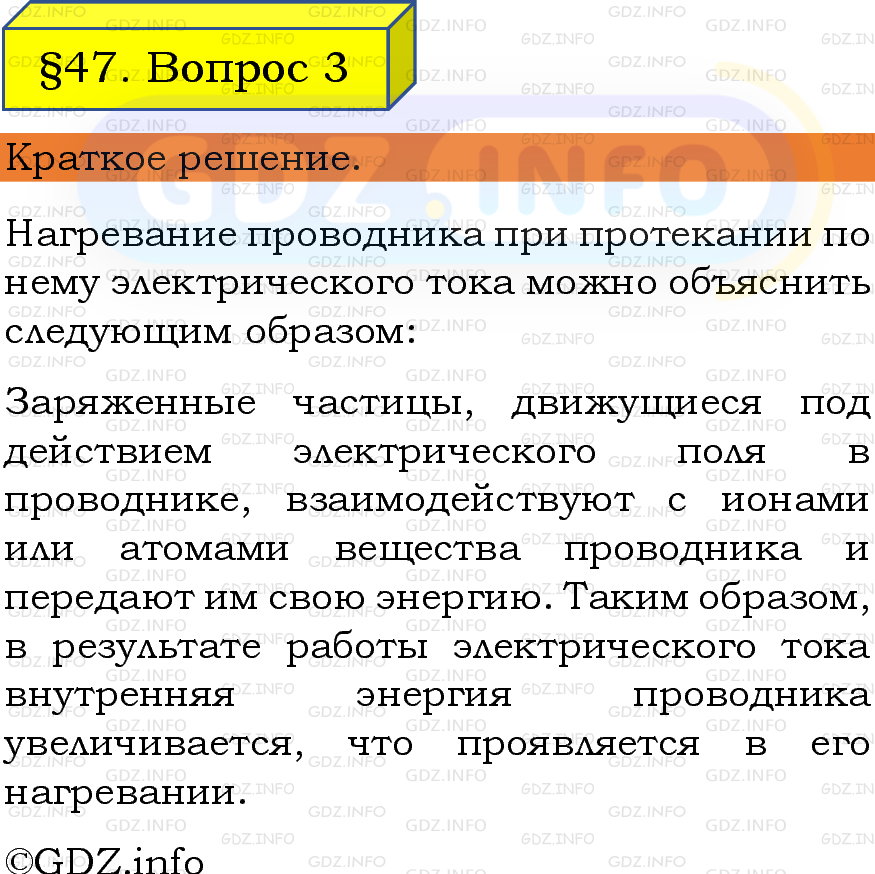 ГДЗ (готовое домашние задание из решебника) по Физике 8 класса авторов И. М. Перышкин, А. И. Иванов, Просвещение, 2023-2025г. ФГОС на Вопрос №3, § 47. Закон Джоуля—Ленца.