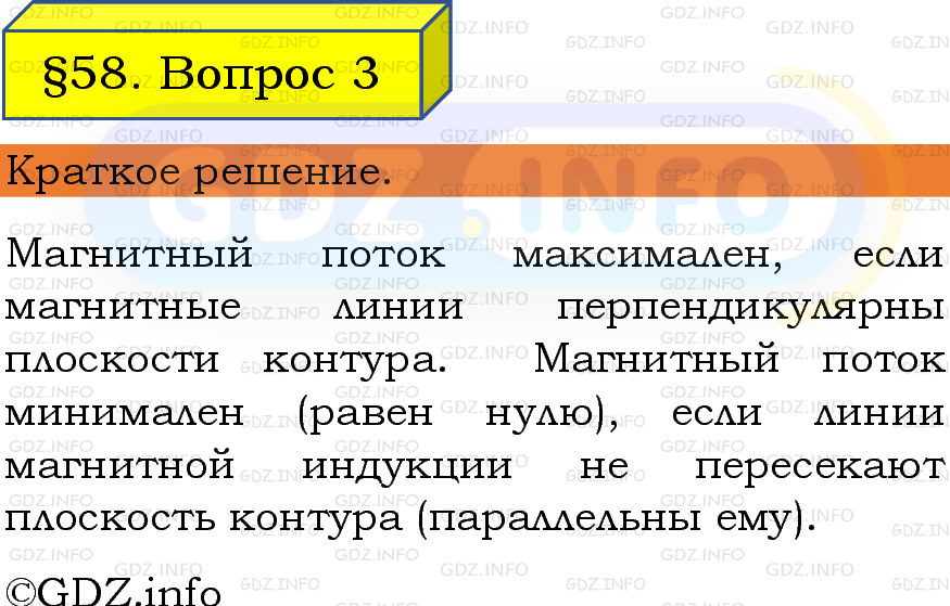 ГДЗ (готовое домашние задание из решебника) по Физике 8 класса авторов И. М. Перышкин, А. И. Иванов, Просвещение, 2023-2025г. ФГОС на Вопрос №3, § 58. Магнитный поток.