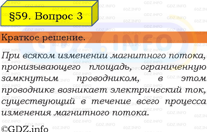 ГДЗ (готовое домашние задание из решебника) по Физике 8 класса авторов И. М. Перышкин, А. И. Иванов, Просвещение, 2023-2025г. ФГОС на Вопрос №3, § 59. Явление электромагнитной индукции.
