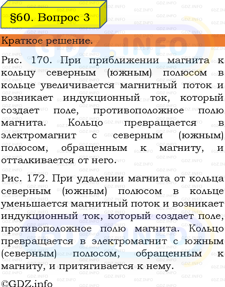 ГДЗ (готовое домашние задание из решебника) по Физике 8 класса авторов И. М. Перышкин, А. И. Иванов, Просвещение, 2023-2025г. ФГОС на Вопрос №3, § 60. Правило Ленца.