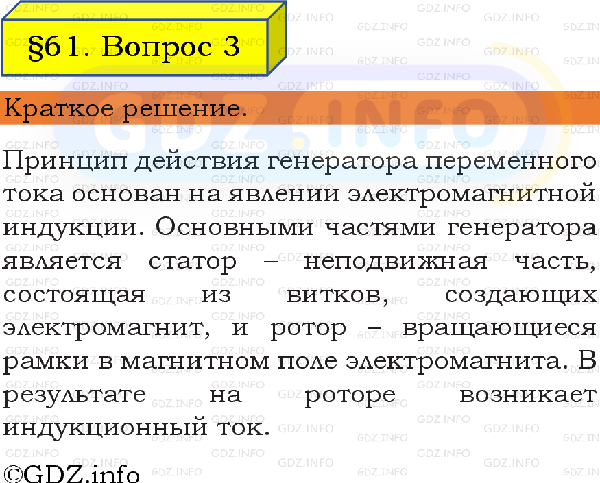 ГДЗ (готовое домашние задание из решебника) по Физике 8 класса авторов И. М. Перышкин, А. И. Иванов, Просвещение, 2023-2025г. ФГОС на Вопрос №3, § 61. Переменный электрический ток. Генератор переменного тока.