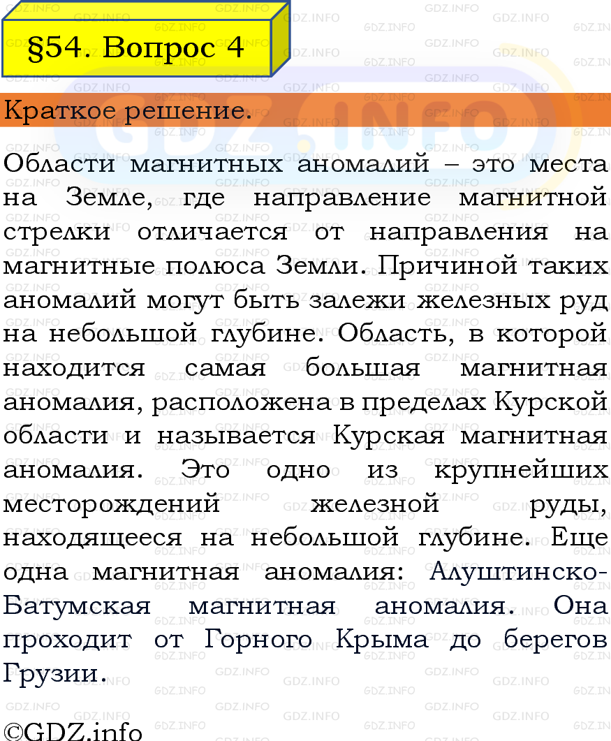 ГДЗ (готовое домашние задание из решебника) по Физике 8 класса авторов И. М. Перышкин, А. И. Иванов, Просвещение, 2023-2025г. ФГОС на Вопрос №4, § 54. Магнитное поле Земли.