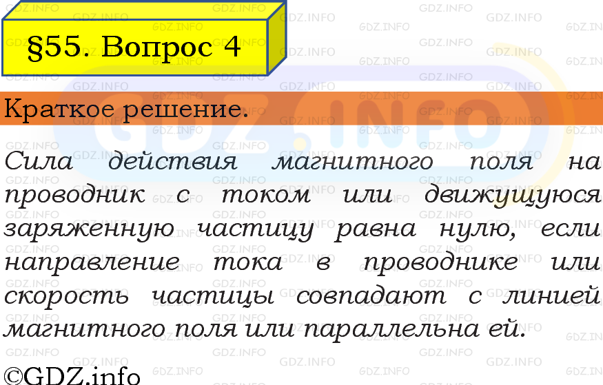 ГДЗ (готовое домашние задание из решебника) по Физике 8 класса авторов И. М. Перышкин, А. И. Иванов, Просвещение, 2023-2025г. ФГОС на Вопрос №4, § 55. Действие магнитного поля на проводник с током.