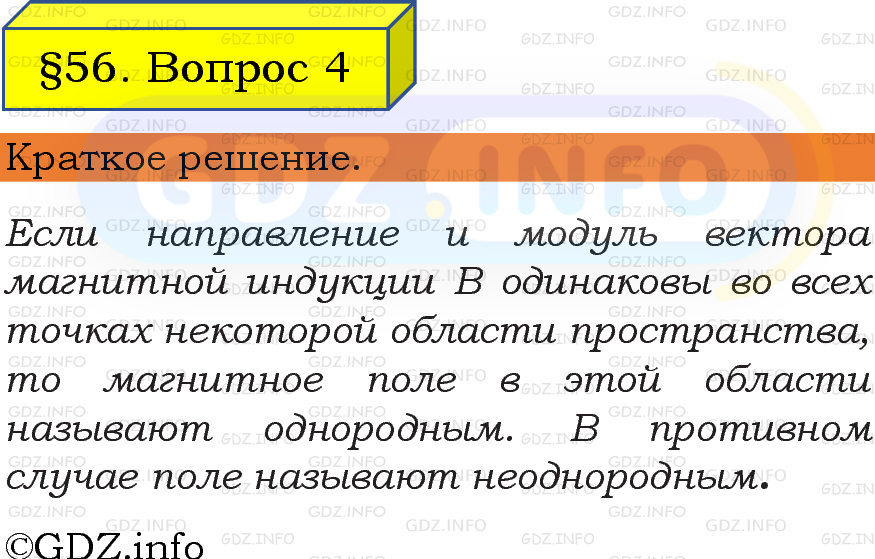 ГДЗ (готовое домашние задание из решебника) по Физике 8 класса авторов И. М. Перышкин, А. И. Иванов, Просвещение, 2023-2025г. ФГОС на Вопрос №4, § 56. Магнитная индукция.