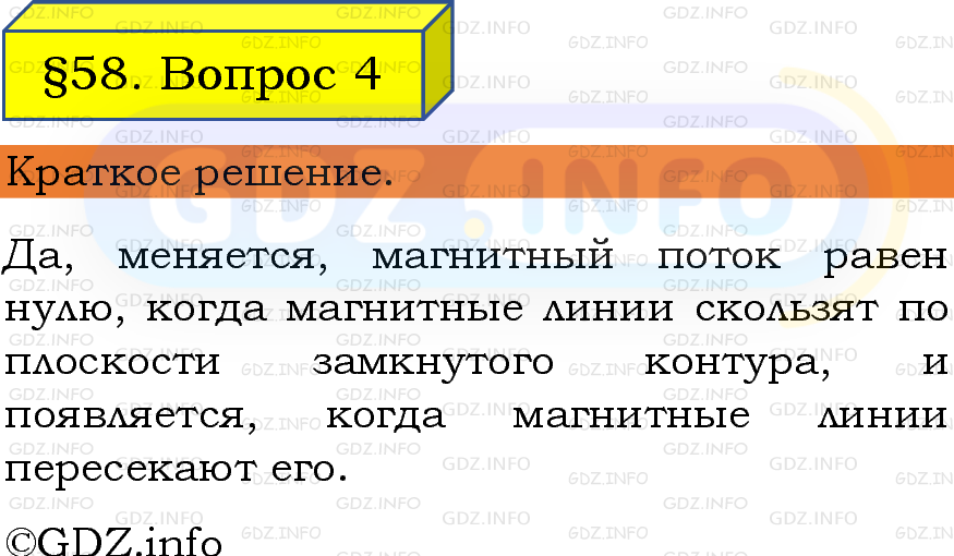 ГДЗ (готовое домашние задание из решебника) по Физике 8 класса авторов И. М. Перышкин, А. И. Иванов, Просвещение, 2023-2025г. ФГОС на Вопрос №4, § 58. Магнитный поток.