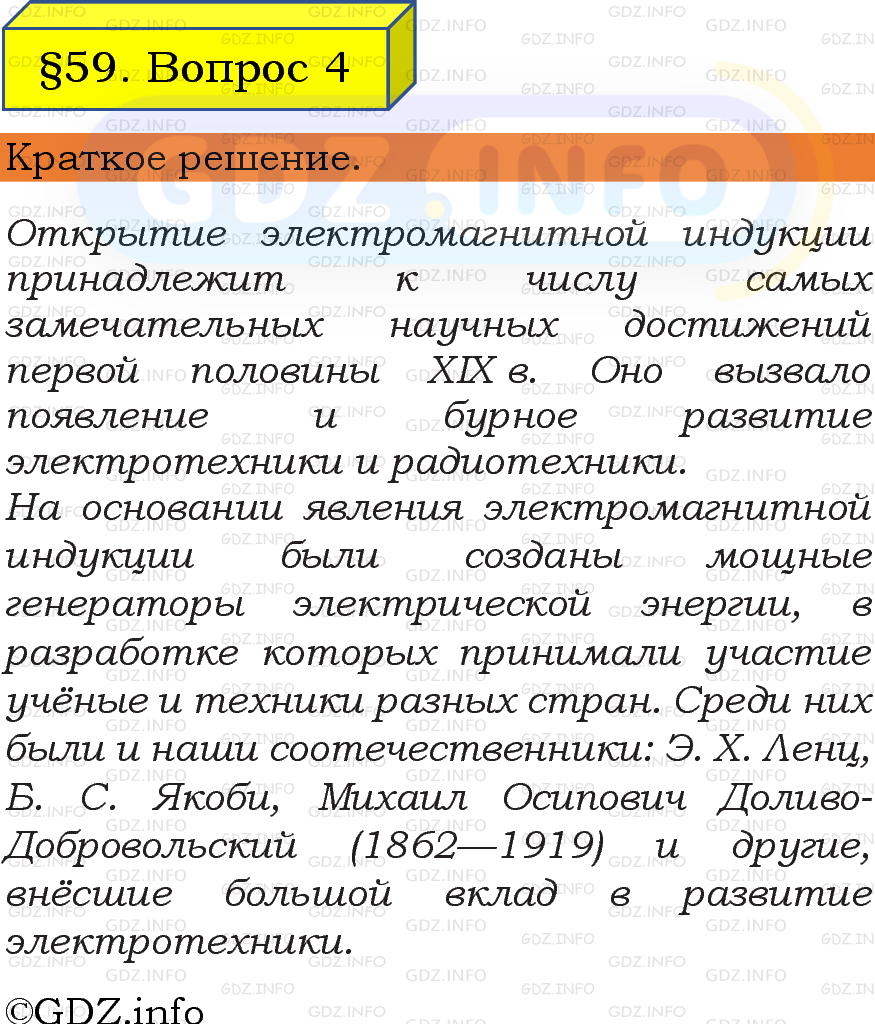 ГДЗ (готовое домашние задание из решебника) по Физике 8 класса авторов И. М. Перышкин, А. И. Иванов, Просвещение, 2023-2025г. ФГОС на Вопрос №4, § 59. Явление электромагнитной индукции.