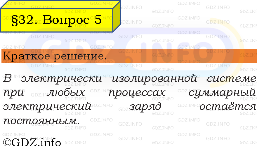 ГДЗ (готовое домашние задание из решебника) по Физике 8 класса авторов И. М. Перышкин, А. И. Иванов, Просвещение, 2023-2025г. ФГОС на Вопрос №5, § 32. Закон сохранения электрического заряда.