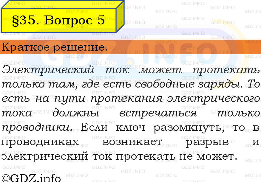 ГДЗ (готовое домашние задание из решебника) по Физике 8 класса авторов И. М. Перышкин, А. И. Иванов, Просвещение, 2023-2025г. ФГОС на Вопрос №5, § 35. Электрическая цепь и её составные части.