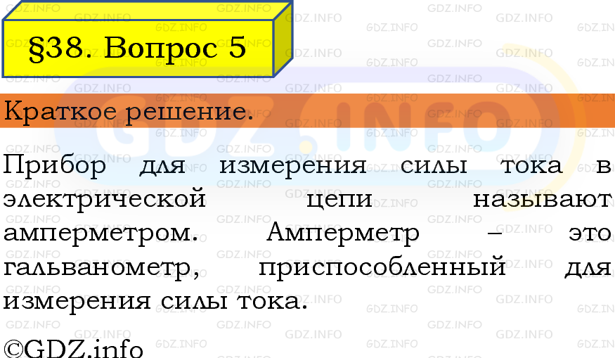 ГДЗ (готовое домашние задание из решебника) по Физике 8 класса авторов И. М. Перышкин, А. И. Иванов, Просвещение, 2023-2025г. ФГОС на Вопрос №5, § 38. Сила тока. Единицы силы тока. Амперметр.