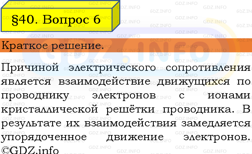 ГДЗ (готовое домашние задание из решебника) по Физике 8 класса авторов И. М. Перышкин, А. И. Иванов, Просвещение, 2023-2025г. ФГОС на Вопрос №6, § 40. Закон Ома для участка цепи.