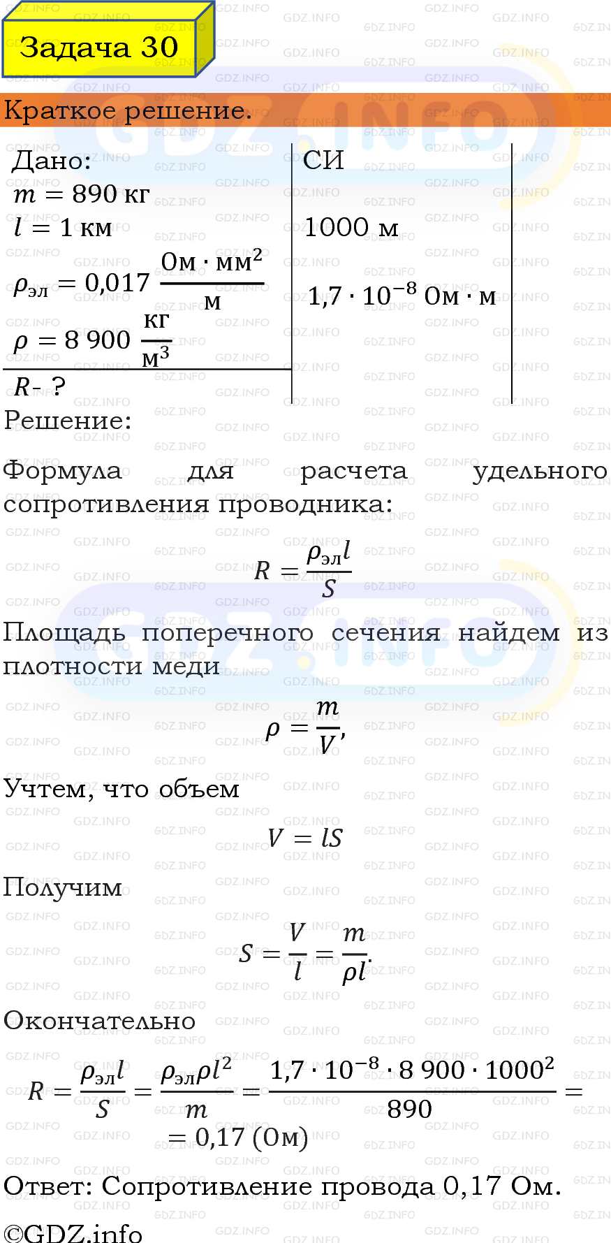 ГДЗ (готовое домашние задание из решебника) по Физике 8 класса авторов И. М. Перышкин, А. И. Иванов, Просвещение, 2023-2025г. ФГОС на Задачи для повторения №30.