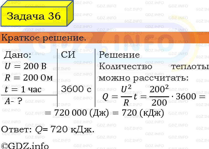 ГДЗ (готовое домашние задание из решебника) по Физике 8 класса авторов И. М. Перышкин, А. И. Иванов, Просвещение, 2023-2025г. ФГОС на Задачи для повторения №36.