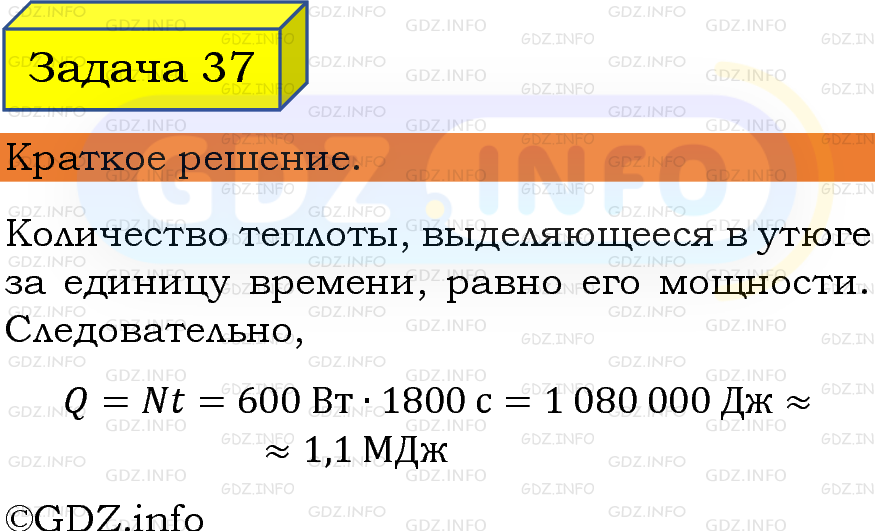 ГДЗ (готовое домашние задание из решебника) по Физике 8 класса авторов И. М. Перышкин, А. И. Иванов, Просвещение, 2023-2025г. ФГОС на Задачи для повторения №37.