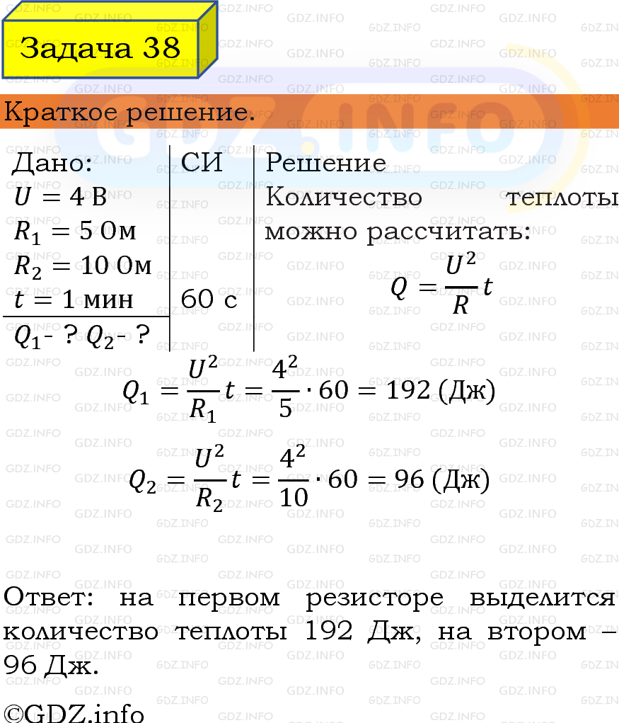 Ответ на Задачи для повторения №38 из ГДЗ по Физике 8 класс: Пёрышкин, Иванов