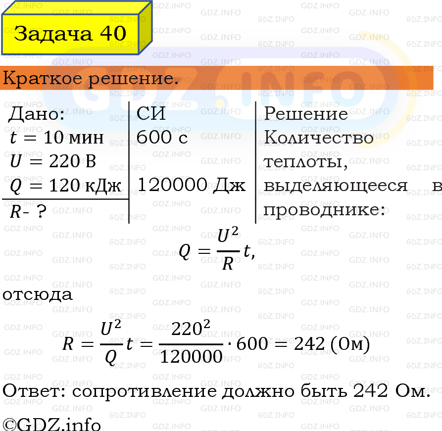 Ответ на Задачи для повторения №40 из ГДЗ по Физике 8 класс: Пёрышкин, Иванов