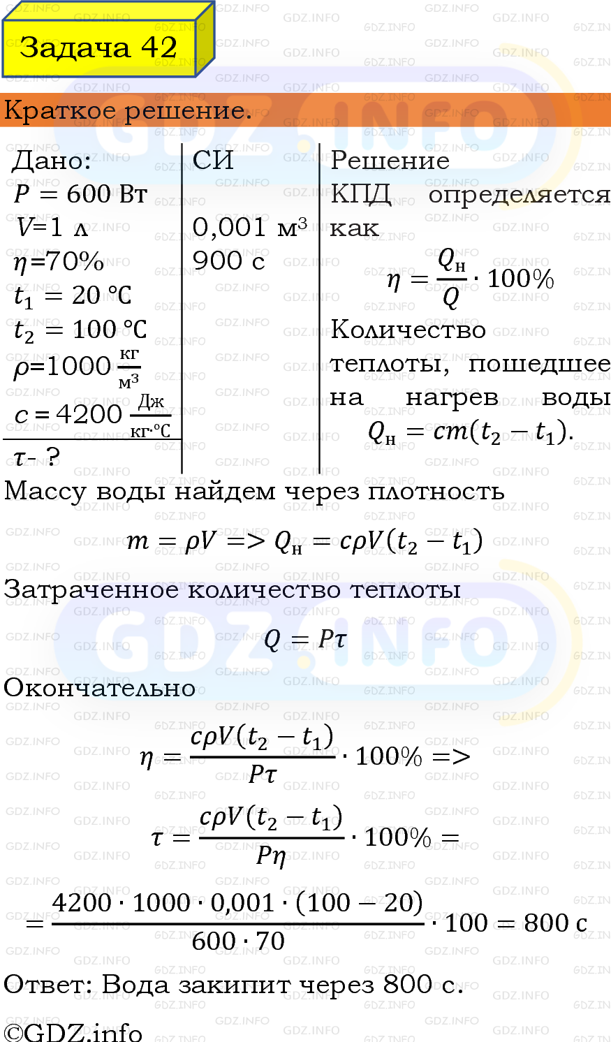 Ответ на Задачи для повторения №42 из ГДЗ по Физике 8 класс: Пёрышкин, Иванов