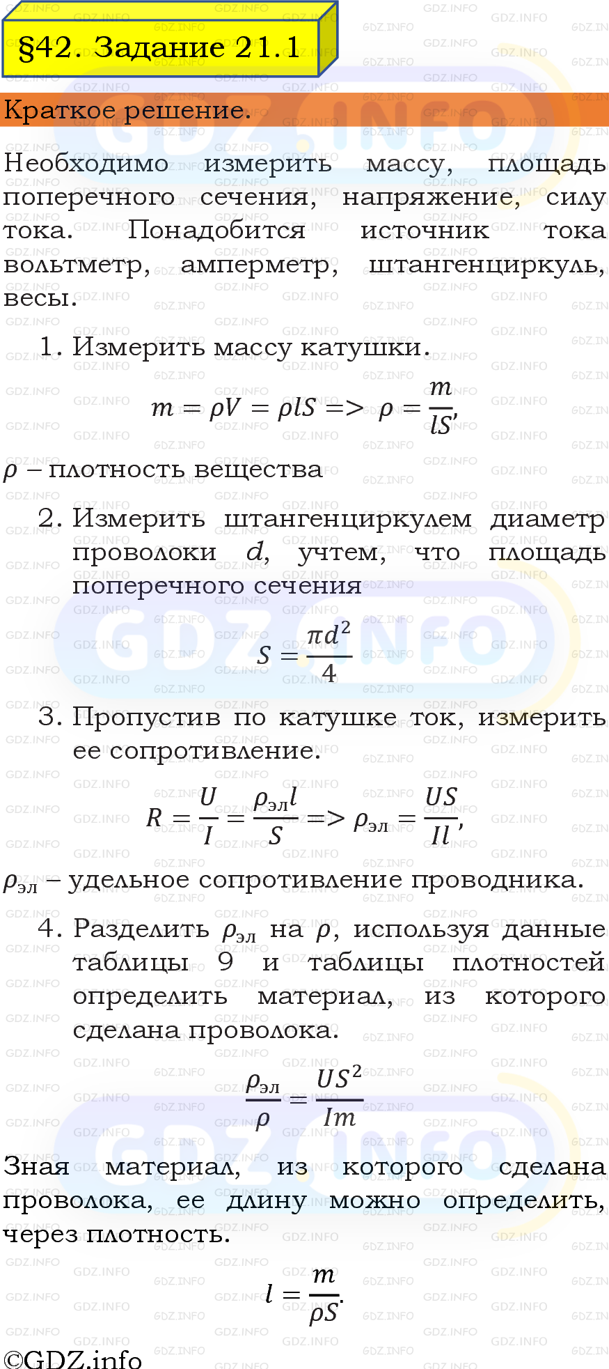 ГДЗ (готовое домашние задание из решебника) по Физике 8 класса авторов И. М. Перышкин, А. И. Иванов, Просвещение, 2023-2025г. ФГОС на Задание 21 №1, § 42. Задачи на расчет сопротивления.
