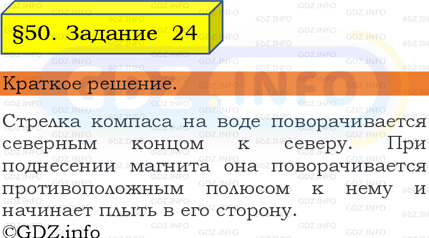 ГДЗ (готовое домашние задание из решебника) по Физике 8 класса авторов И. М. Перышкин, А. И. Иванов, Просвещение, 2023-2025г. ФГОС на Задание 24 №1, § 50. Постоянные магниты. Магнитное поле постоянных магнитов.