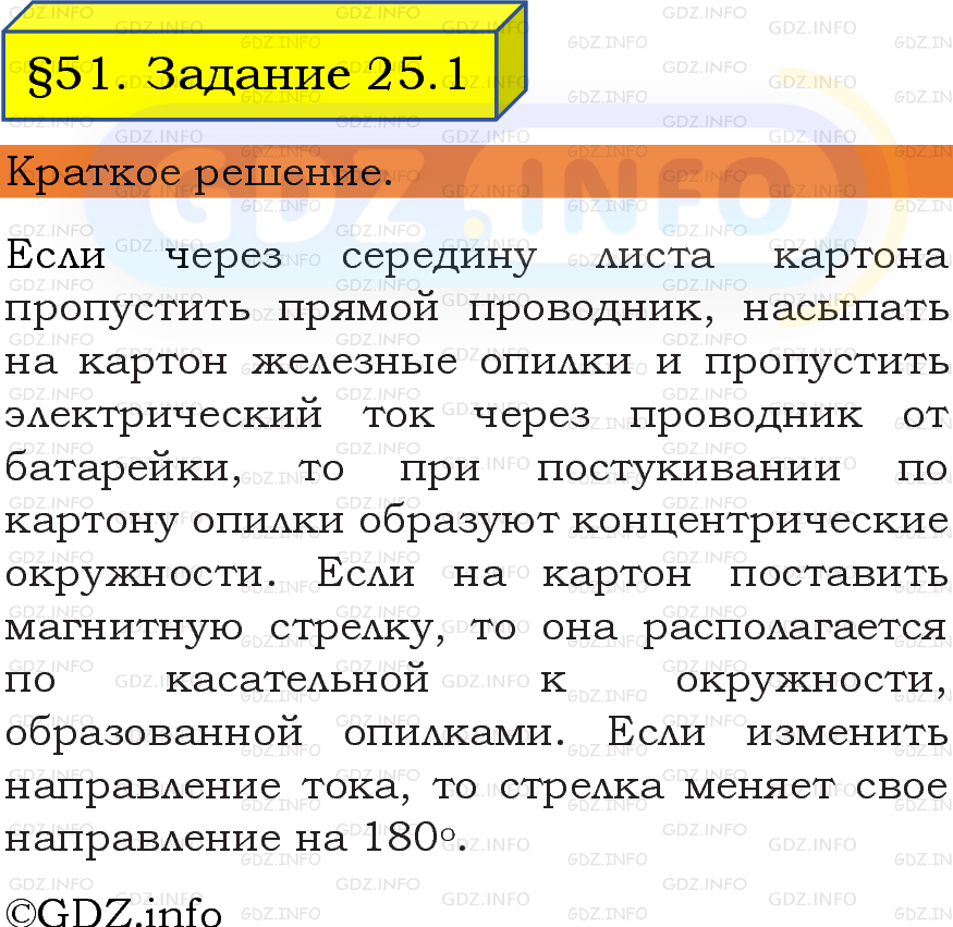 ГДЗ (готовое домашние задание из решебника) по Физике 8 класса авторов И. М. Перышкин, А. И. Иванов, Просвещение, 2023-2025г. ФГОС на Задание 25 №1, § 51. Магнитное поле тока.