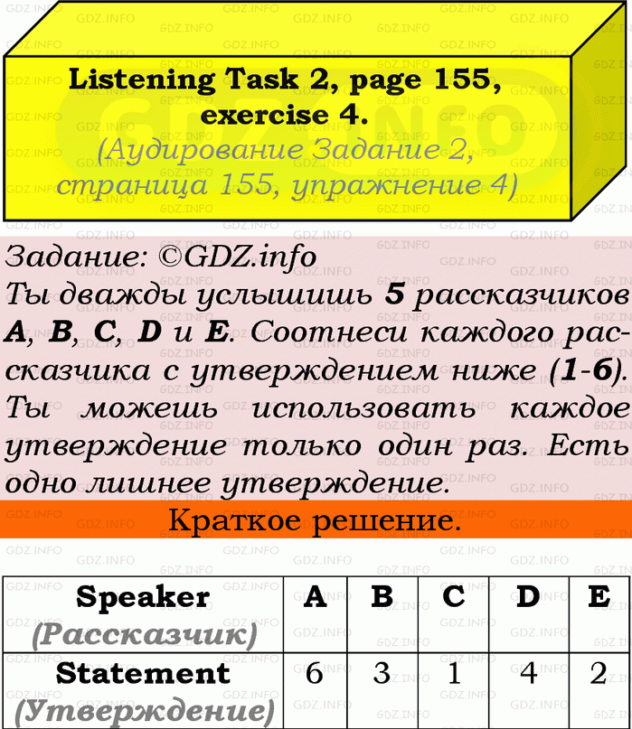 ГДЗ (готовое домашние задание из решебника) по Английскому языку 9 класса авторов Ю.Е. Ваулина, Просвещение, 2010/2019/2023г. на Exam Practice Section, Номер 4.Условие 2023 г.