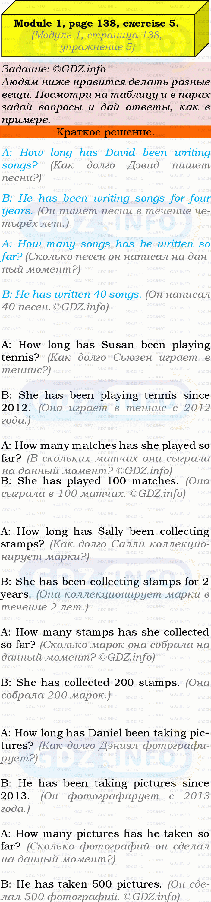 ГДЗ (готовое домашние задание из решебника) по Английскому языку 9 класса авторов Ю.Е. Ваулина, Просвещение, 2010/2019/2023г. на Grammar Check, Страница 138-139, Номер 5. Module 1.Условие 2023 г.