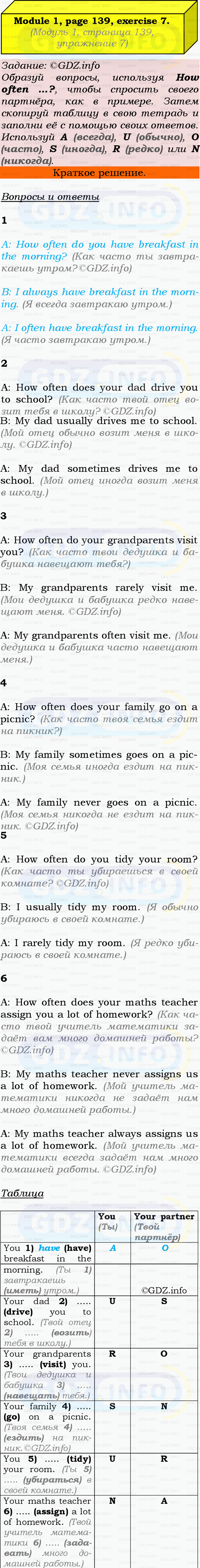 ГДЗ (готовое домашние задание из решебника) по Английскому языку 9 класса авторов Ю.Е. Ваулина, Просвещение, 2010/2019/2023г. на Grammar Check, Страница 138-139, Номер 7. Module 1.Условие 2023 г.