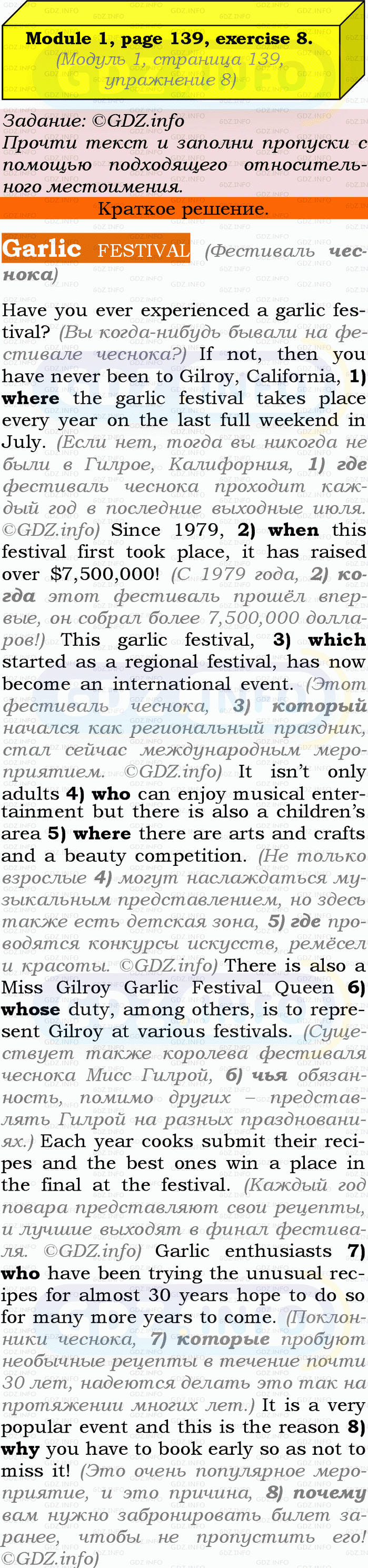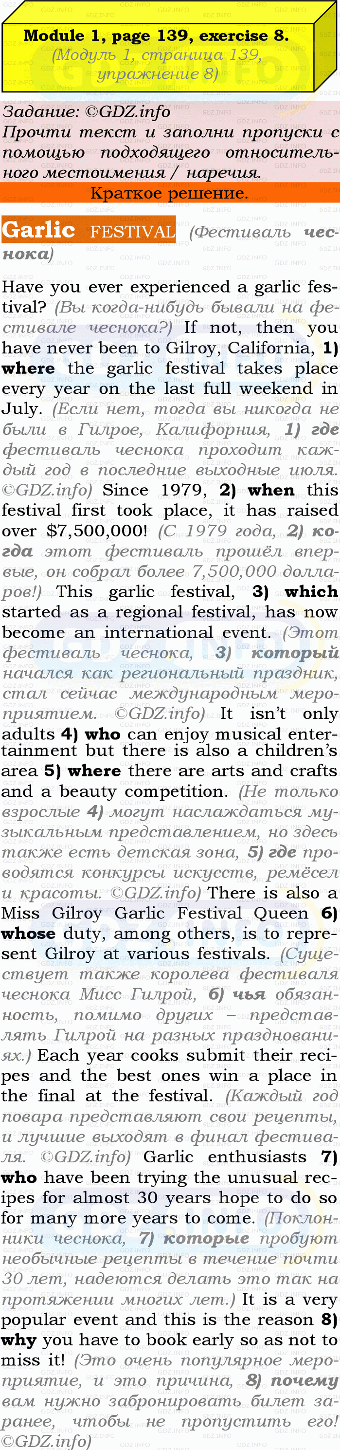 ГДЗ (готовое домашние задание из решебника) по Английскому языку 9 класса авторов Ю.Е. Ваулина, Просвещение, 2010/2019/2023г. на Grammar Check, Страница 138-139, Номер 8. Module 1.Условие 2023 г.