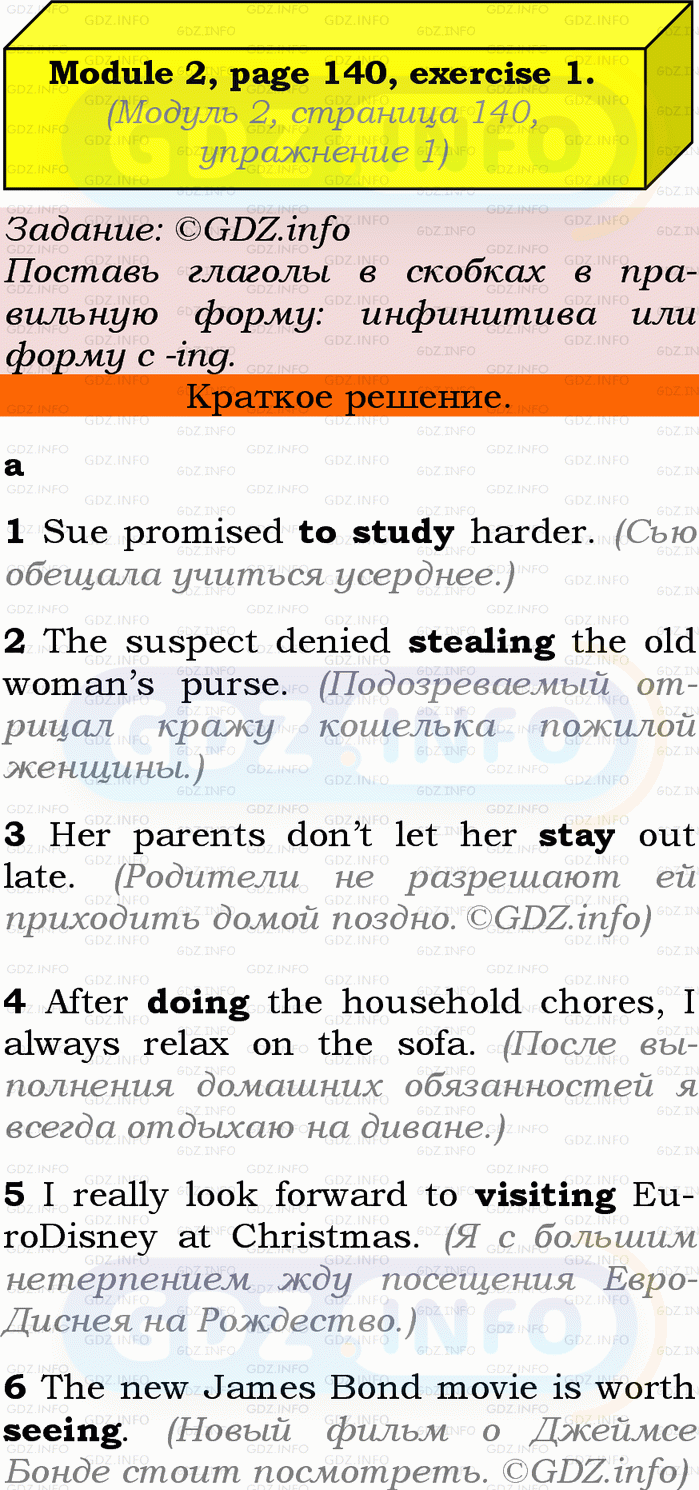 ГДЗ (готовое домашние задание из решебника) по Английскому языку 9 класса авторов Ю.Е. Ваулина, Просвещение, 2010/2019/2023г. на Grammar Check, Страница 140-141, Номер 1. Module 2.Условие 2023 г.