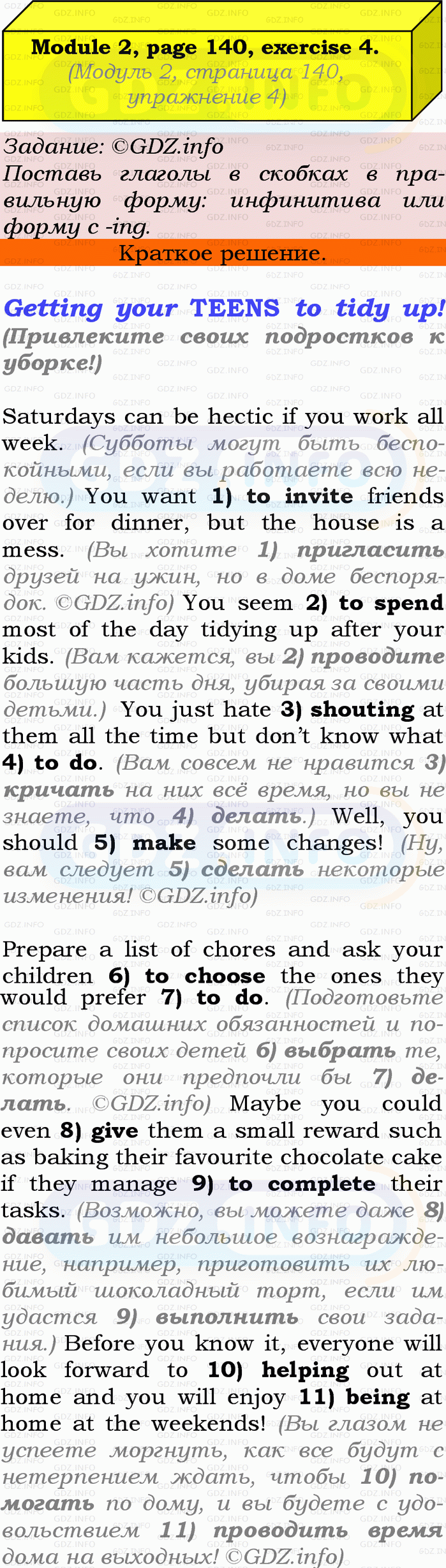 ГДЗ (готовое домашние задание из решебника) по Английскому языку 9 класса авторов Ю.Е. Ваулина, Просвещение, 2010/2019/2023г. на Grammar Check, Страница 140-141, Номер 4. Module 2.Условие 2023 г.