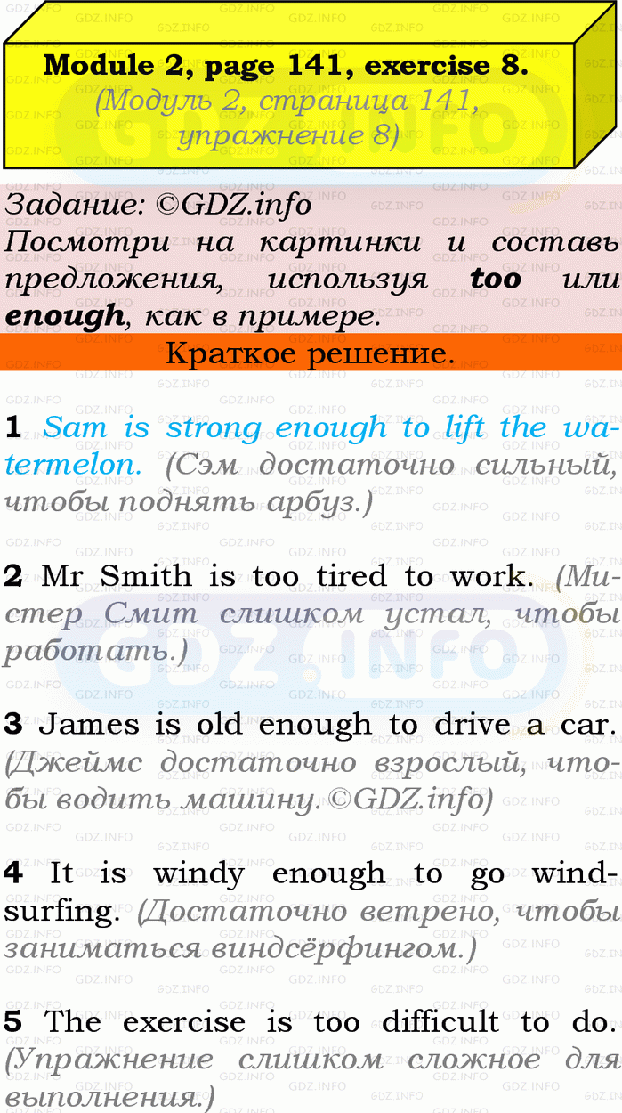 ГДЗ (готовое домашние задание из решебника) по Английскому языку 9 класса авторов Ю.Е. Ваулина, Просвещение, 2010/2019/2023г. на Grammar Check, Страница 140-141, Номер 8. Module 2.Условие 2023 г.
