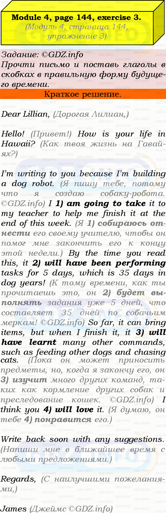 ГДЗ (готовое домашние задание из решебника) по Английскому языку 9 класса авторов Ю.Е. Ваулина, Просвещение, 2010/2019/2023г. на Grammar Check, Страница 144-145, Номер 3. Module 4.Условие 2023 г.