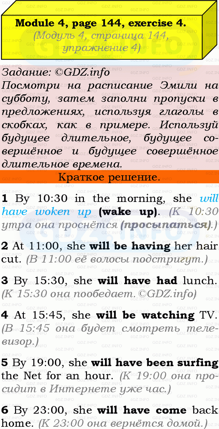 ГДЗ (готовое домашние задание из решебника) по Английскому языку 9 класса авторов Ю.Е. Ваулина, Просвещение, 2010/2019/2023г. на Grammar Check, Страница 144-145, Номер 4. Module 4.Условие 2023 г.