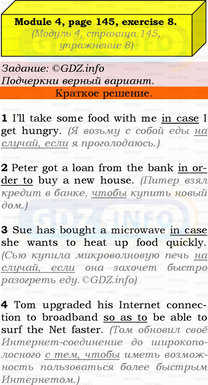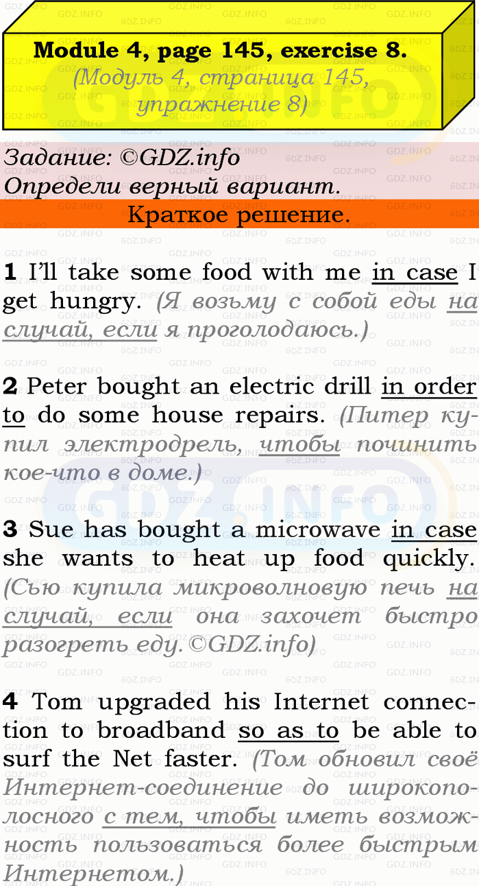 ГДЗ (готовое домашние задание из решебника) по Английскому языку 9 класса авторов Ю.Е. Ваулина, Просвещение, 2010/2019/2023г. на Grammar Check, Страница 144-145, Номер 8. Module 4.Условие 2023 г.