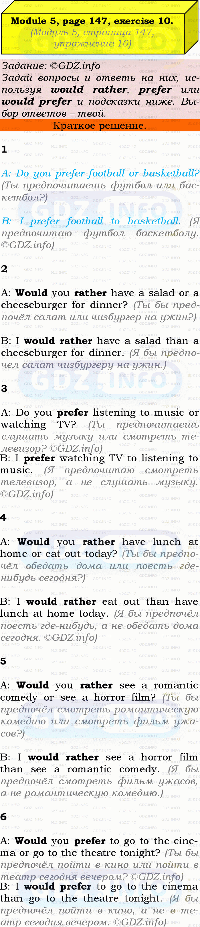 10 Ask and answer questions using would rather, prefer or would prefer and the prompts below. The choice of answers is yours.