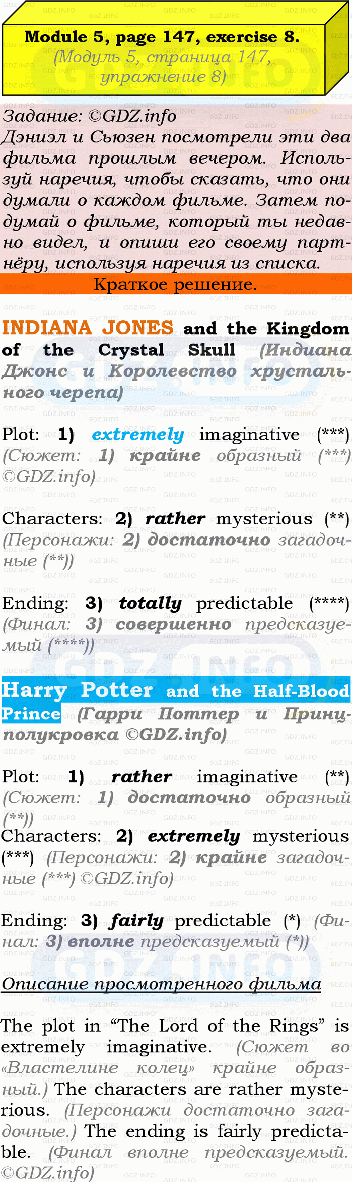 ГДЗ (готовое домашние задание из решебника) по Английскому языку 9 класса авторов Ю.Е. Ваулина, Просвещение, 2010/2019/2023г. на Grammar Check, Страница 146-147, Номер 8. Module 5.Условие 2023 г.
