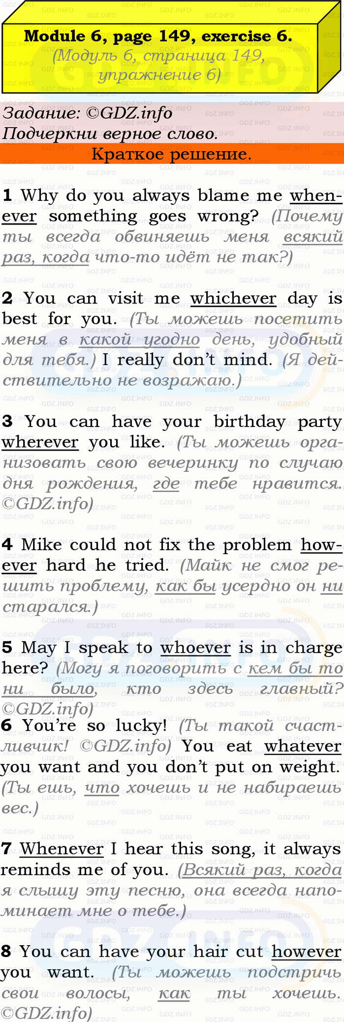 ГДЗ (готовое домашние задание из решебника) по Английскому языку 9 класса авторов Ю.Е. Ваулина, Просвещение, 2010/2019/2023г. на Grammar Check, Страница 148-149, Номер 6. Module 6.Условие 2023 г.