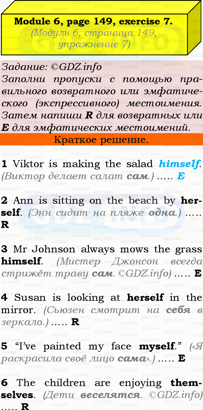 ГДЗ (готовое домашние задание из решебника) по Английскому языку 9 класса авторов Ю.Е. Ваулина, Просвещение, 2010/2019/2023г. на Grammar Check, Страница 148-149, Номер 7. Module 6.Условие 2023 г.