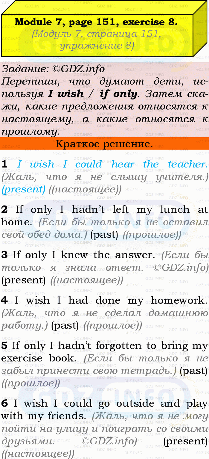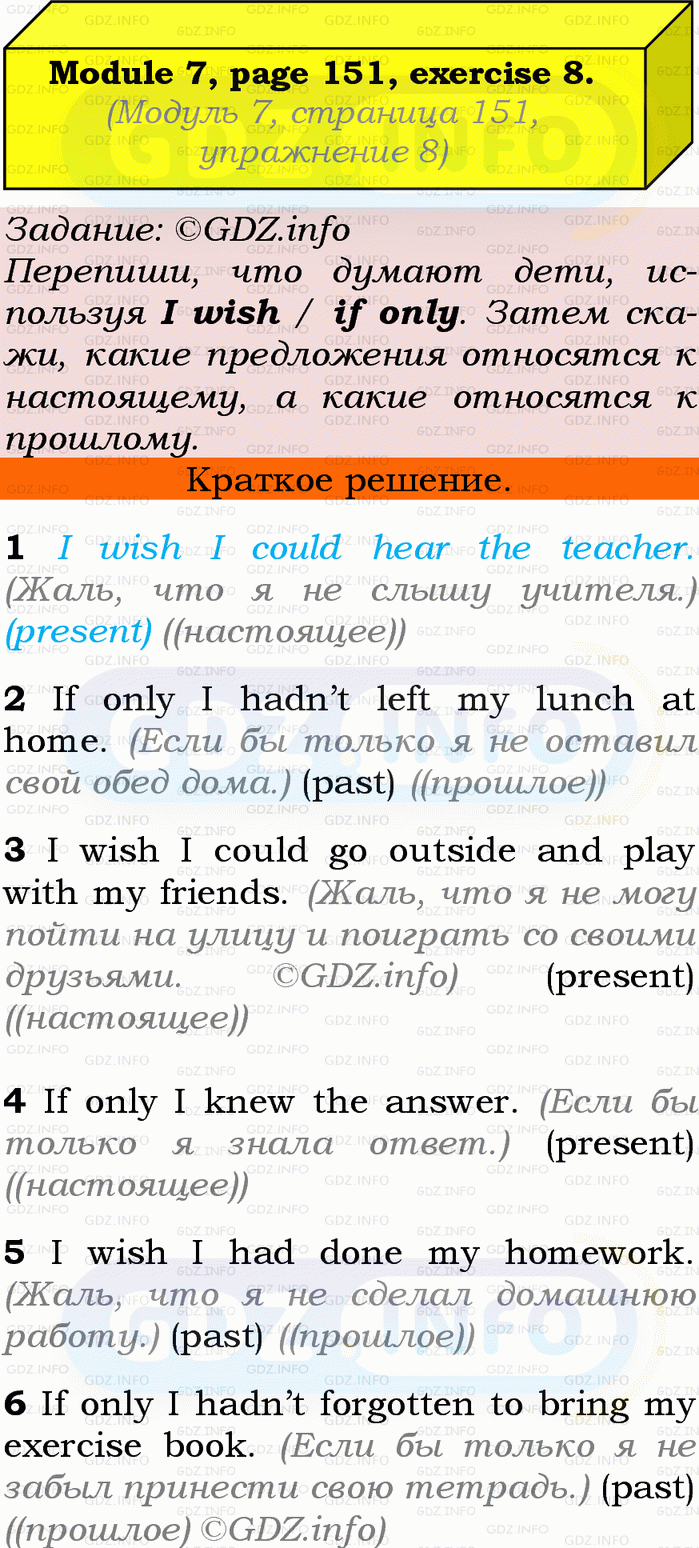 ГДЗ (готовое домашние задание из решебника) по Английскому языку 9 класса авторов Ю.Е. Ваулина, Просвещение, 2010/2019/2023г. на Grammar Check, Страница 150-151, Номер 8. Module 7.Условие 2023 г.