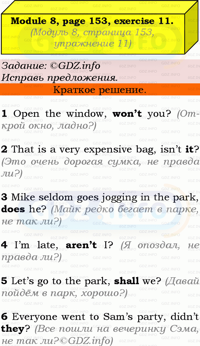 ГДЗ (готовое домашние задание из решебника) по Английскому языку 9 класса авторов Ю.Е. Ваулина, Просвещение, 2010/2019/2023г. на Grammar Check, Страница 152-153, Номер 10. Module 8.Условие 2023 г.