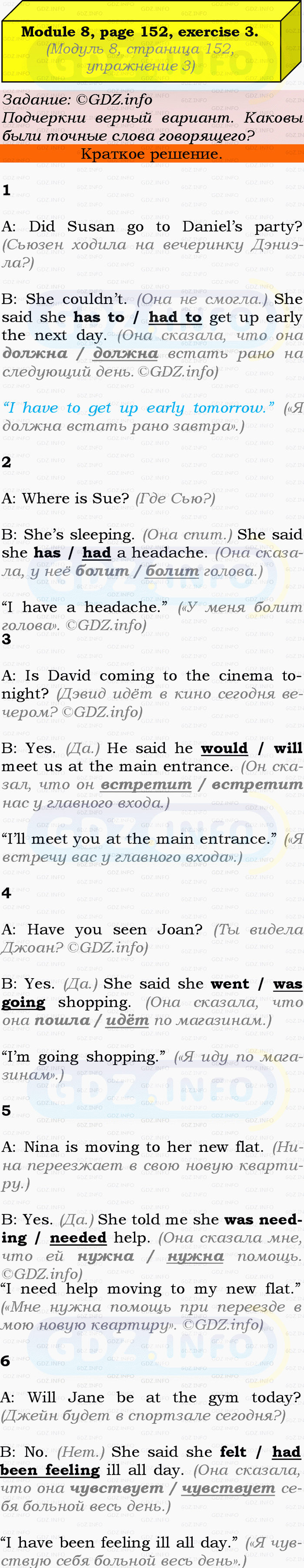 ГДЗ (готовое домашние задание из решебника) по Английскому языку 9 класса авторов Ю.Е. Ваулина, Просвещение, 2010/2019/2023г. на Grammar Check, Страница 152-153, Номер 3. Module 8.Условие 2023 г.