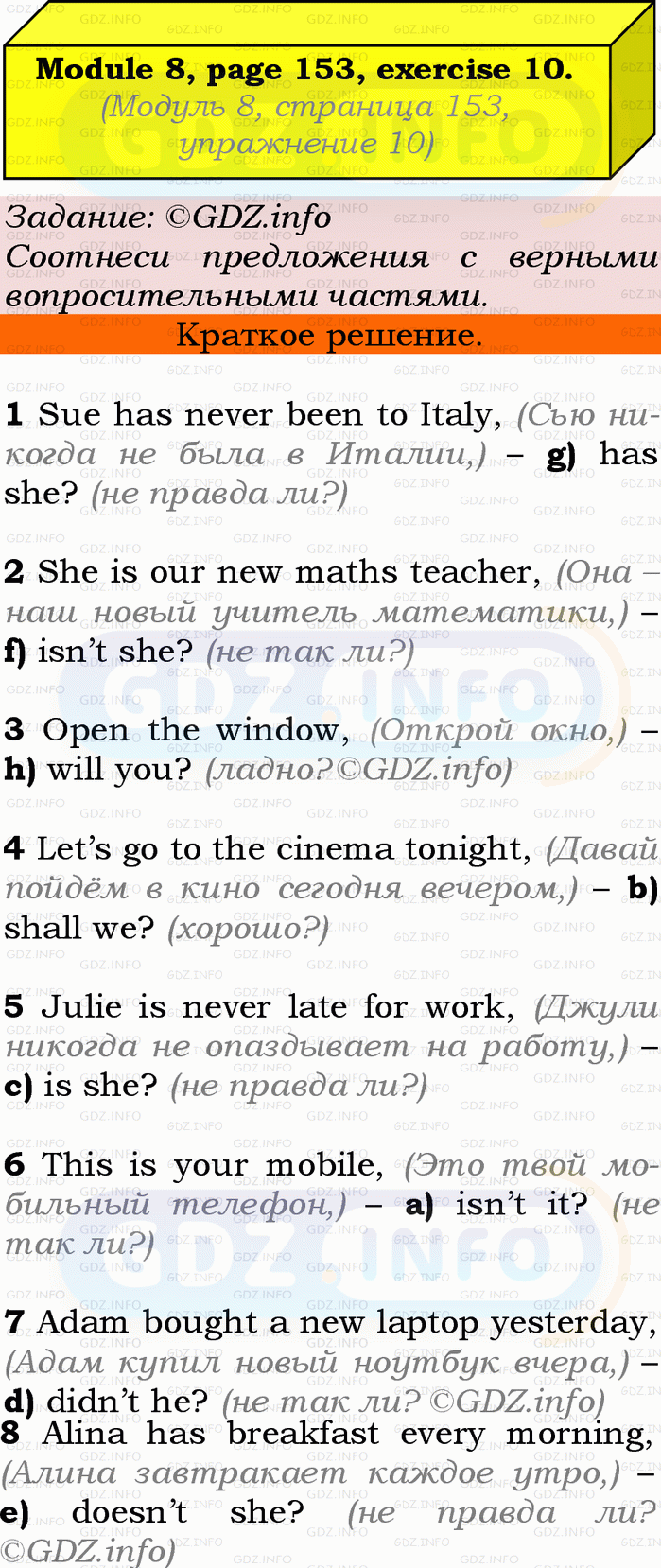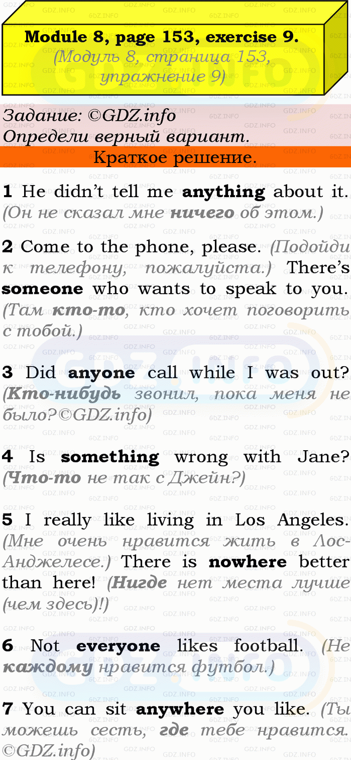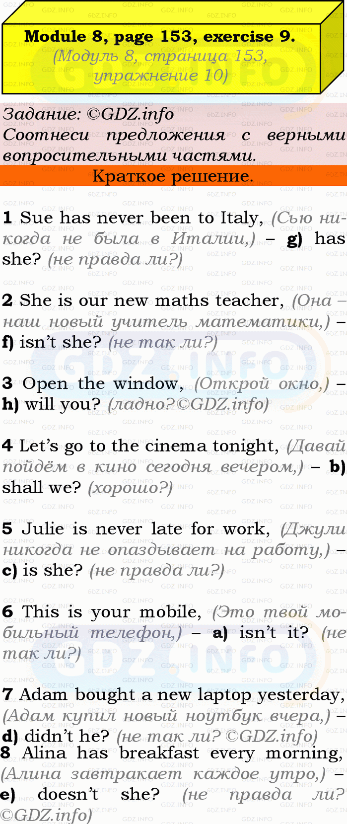 ГДЗ (готовое домашние задание из решебника) по Английскому языку 9 класса авторов Ю.Е. Ваулина, Просвещение, 2010/2019/2023г. на Grammar Check, Страница 152-153, Номер 9. Module 8.Условие 2023 г.