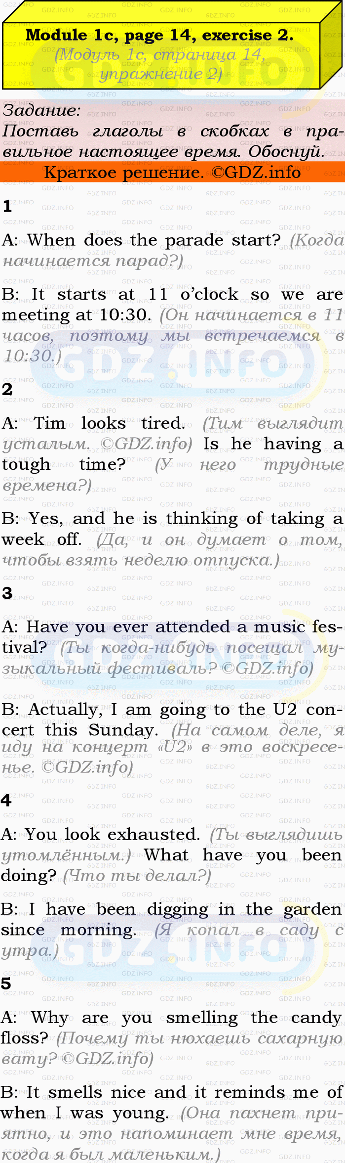ГДЗ (готовое домашние задание из решебника) по Английскому языку 9 класса авторов Ю.Е. Ваулина, Просвещение, 2010/2019/2023г. на Module 1, Страница 14-15, Номер 2. 1c Grammar in Use.Условие 2023 г.