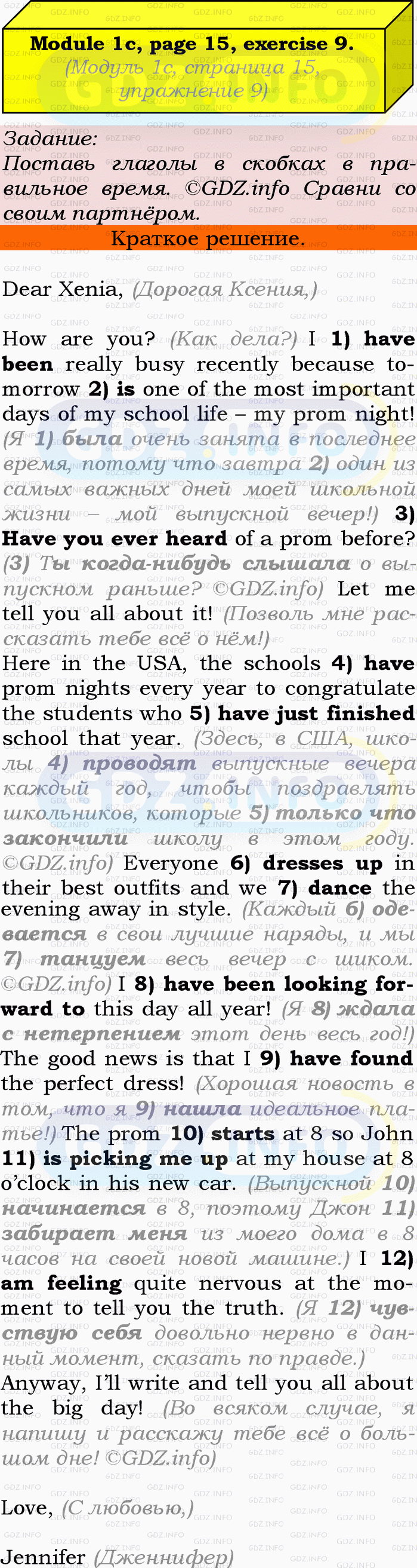 ГДЗ (готовое домашние задание из решебника) по Английскому языку 9 класса авторов Ю.Е. Ваулина, Просвещение, 2010/2019/2023г. на Module 1, Страница 14-15, Номер 9. 1c Grammar in Use.Условие 2023 г.