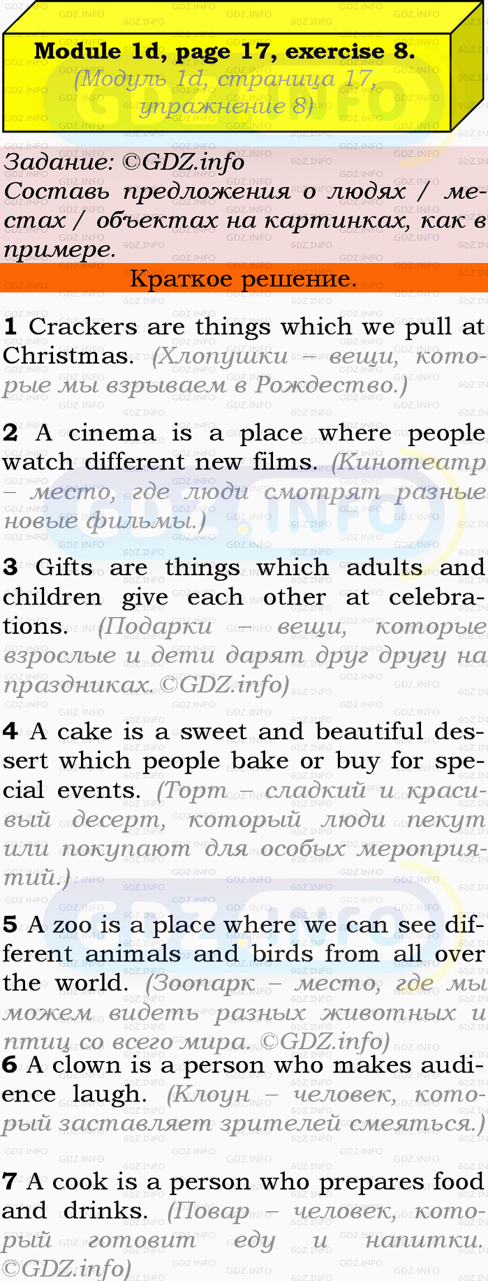 ГДЗ (готовое домашние задание из решебника) по Английскому языку 9 класса авторов Ю.Е. Ваулина, Просвещение, 2010/2019/2023г. на Module 1, Страница 16-17, Номер 8. 1d Vocabulary & Speaking.Условие 2023 г.