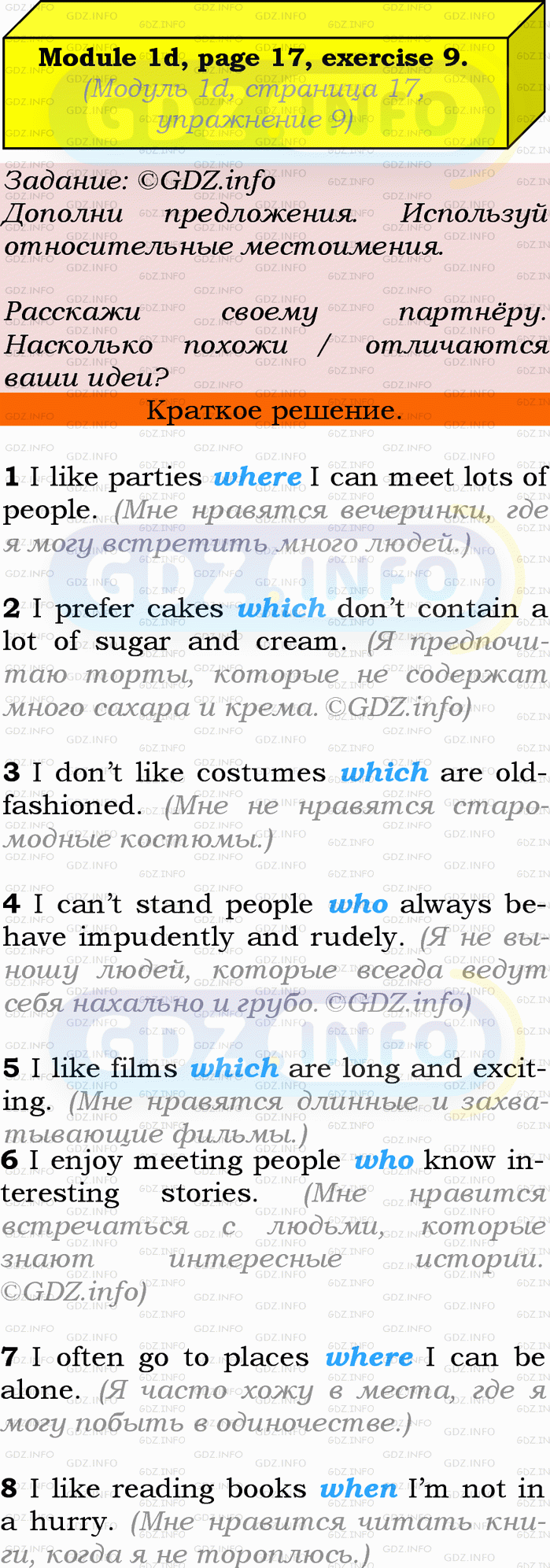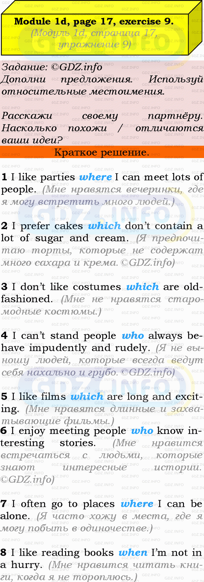 Ответ на Module 1, Страница 16-17, Номер 9 из ГДЗ по Английскому языку 9 класс: Ваулина (Учебник Spotlight)
