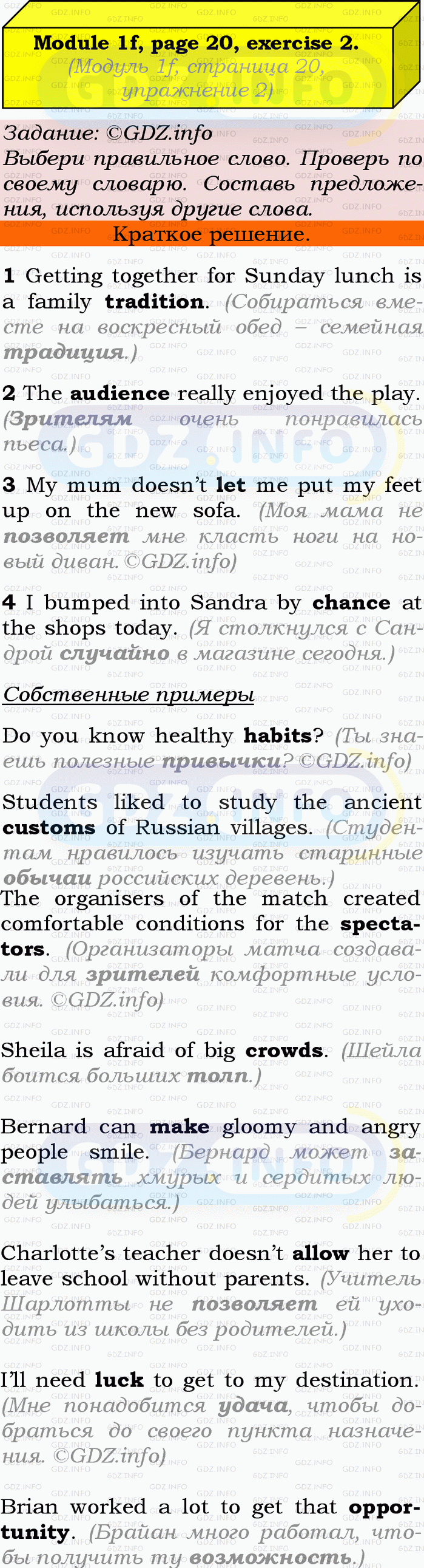 ГДЗ (готовое домашние задание из решебника) по Английскому языку 9 класса авторов Ю.Е. Ваулина, Просвещение, 2010/2019/2023г. на Module 1, Страница 20, Номер 2. 1f English in Use.Условие 2023 г.