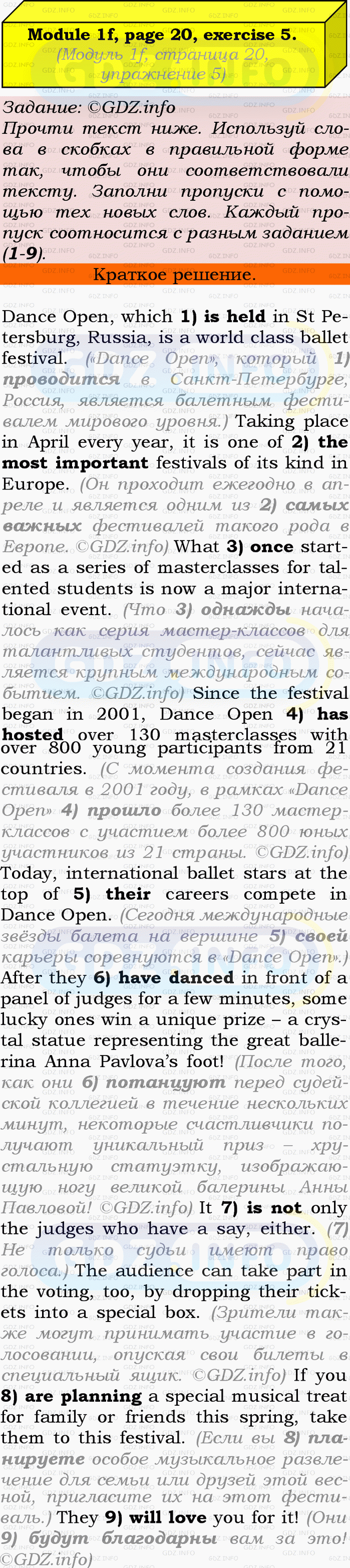 ГДЗ (готовое домашние задание из решебника) по Английскому языку 9 класса авторов Ю.Е. Ваулина, Просвещение, 2010/2019/2023г. на Module 1, Страница 20, Номер 5. 1f English in Use.Условие 2023 г.