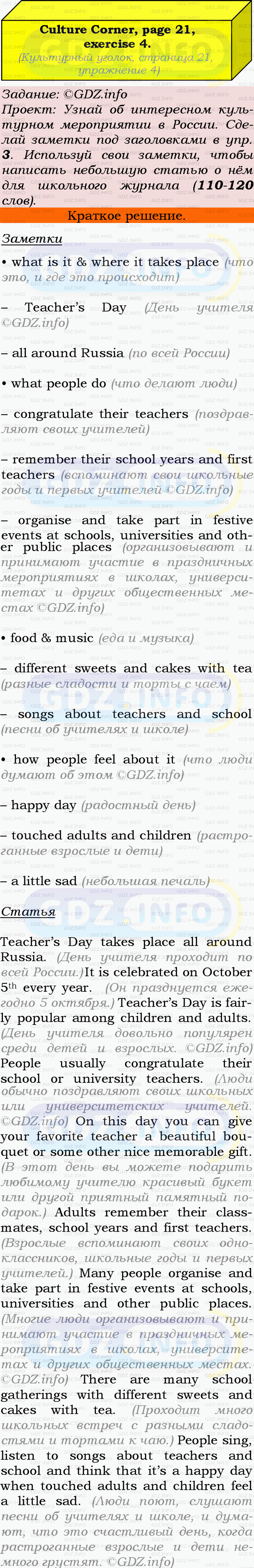ГДЗ (готовое домашние задание из решебника) по Английскому языку 9 класса авторов Ю.Е. Ваулина, Просвещение, 2010/2019/2023г. на Module 1, Страница 21, Номер 4. Culture corner 1.Условие 2023 г.