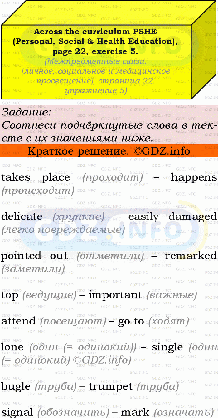 ГДЗ (готовое домашние задание из решебника) по Английскому языку 9 класса авторов Ю.Е. Ваулина, Просвещение, 2010/2019/2023г. на Module 1, Страница 22-23, Номер 5. Across the Curriculum.Условие 2023 г.